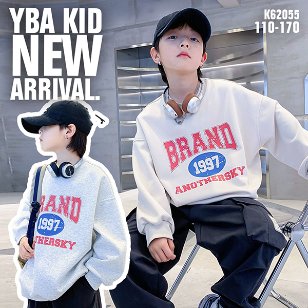 美式寬鬆落肩字母圖案酷炫長袖上衣(米/淺灰)【K62055】