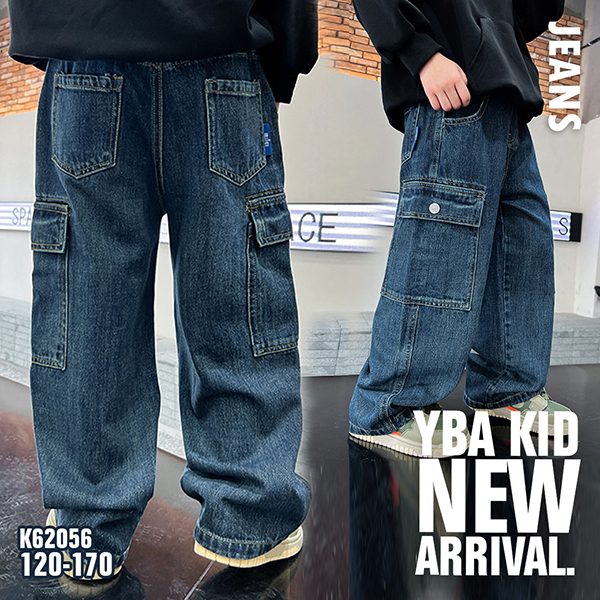工裝風闊腿直筒單寧牛仔長褲(藍)【K62056】
