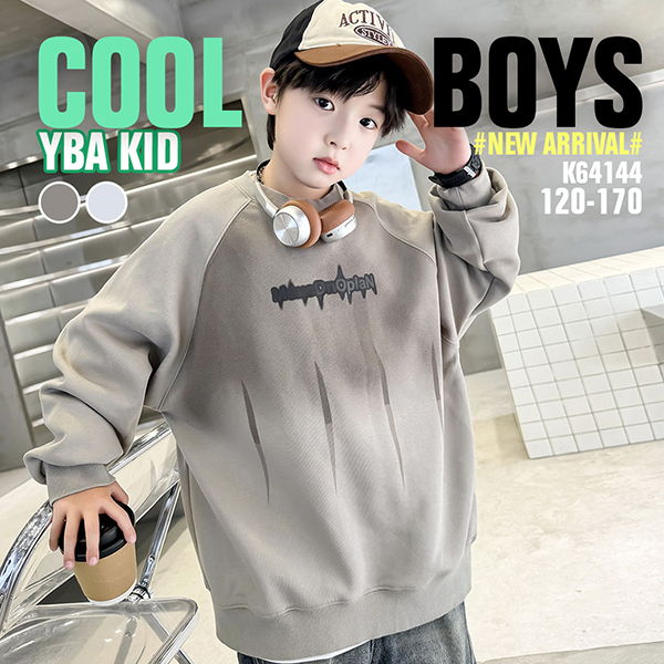 美式插肩袖秋款字母圖案酷炫造型長袖上衣(灰/卡其)【K64144】