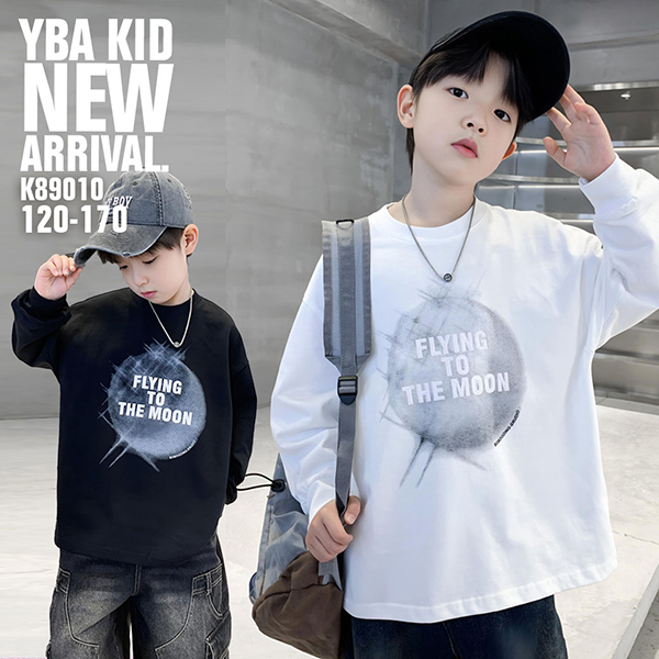韓系秋款寬鬆打底飛月球圖案長袖上衣(黑/白)【K89010】
